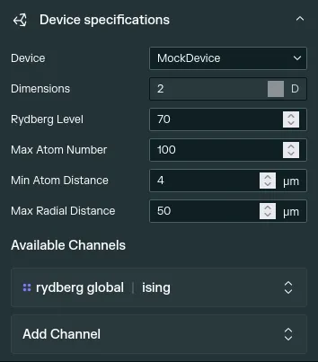 Before creating a quantum program, we need to decide on which kind of device it will run. Device limitations and capabilities have consequences on the possible register configurations and how pulses will affect the qubit states.